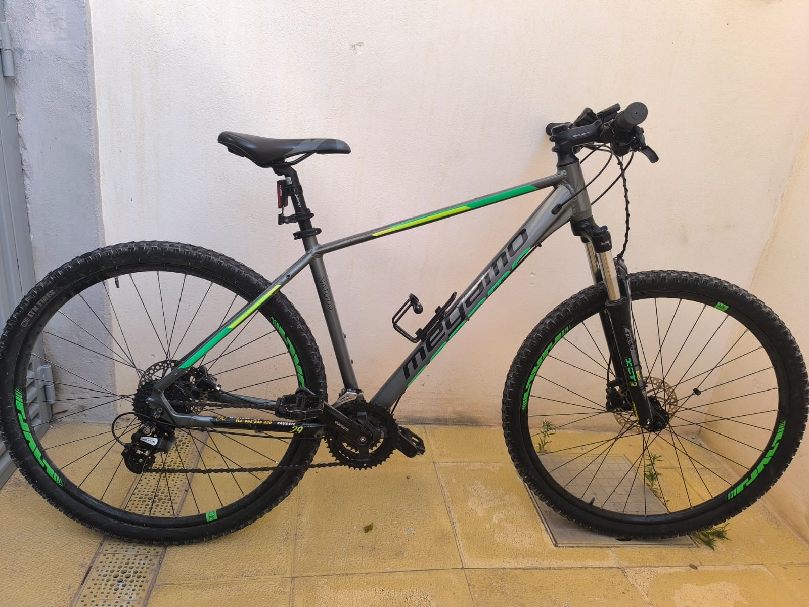 Megamo 29 inches silver color: Size L/XL Aluminum frame, front suspension, hydraulic brakes, 3x8v Shimano.